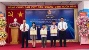 Ban tổ chức trao bằng khen cho 3 học sinh đoạt giải nhất – Ảnh: [...]