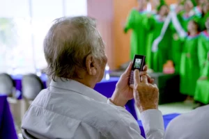 Ông ngoại 91 tuổi đem điện thoại ‘cục gạch’ chụp hình tốt nghiệp cho cháu