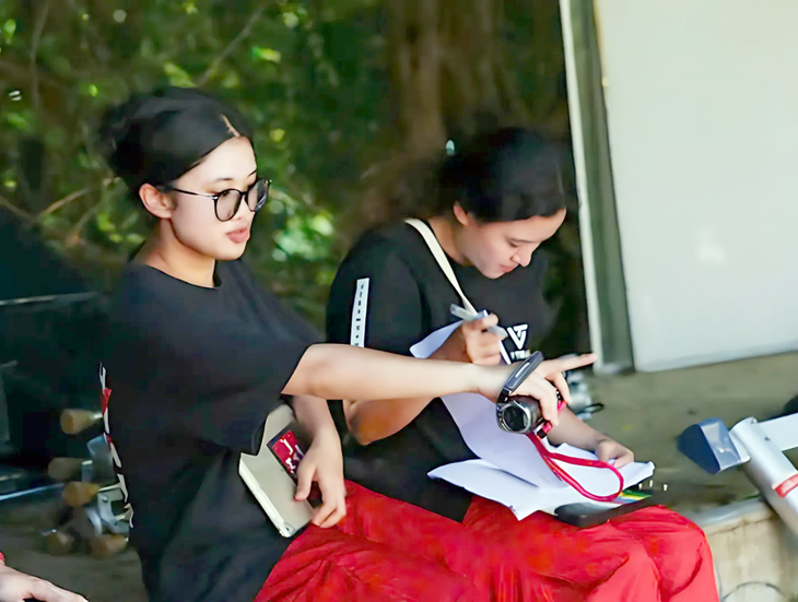 Vậy là từ tháng 7-2024 đến cuối tháng 4-2025, bộ đôi Thùy Trang và Uyển Thư chia việc hành động: đạo diễn phát triển kịch bản, thử nghiệm cấu trúc và nhịp; còn nhà sản xuất lập hồ sơ dự án, mời ê kíp, dự trù kinh phí và vạch lộ trình phát hành. Mỗi bước đều qua vòng góp ý của giảng viên, bạn học rồi mới chốt phương án triển khai.