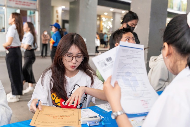 Thí sinh trúng tuyển đại học năm 2025 làm thủ tục nhập học – Ảnh: N.V.