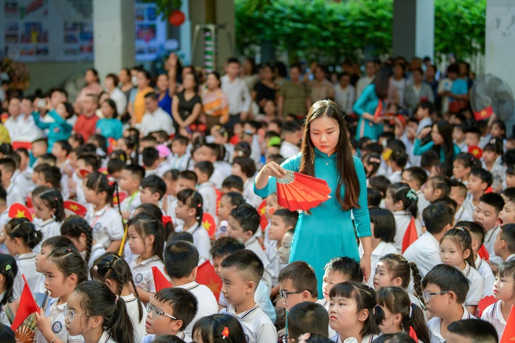 Cô trò trong lễ khai giảng năm học mới 2025-2026 tại Hà Nội – Ảnh: NAM TRẦN