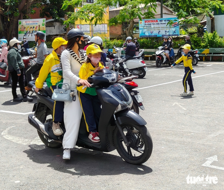 Nhiều phụ huynh đã đưa con rời Trường tiểu học T.V. ngay khi bữa ăn trưa đang diễn ra – Ảnh: M.V.