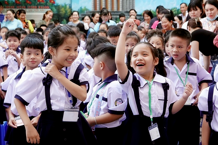Học sinh TP.HCM hớn hở trong ngày tựu trường năm học mới – Ảnh: T.H