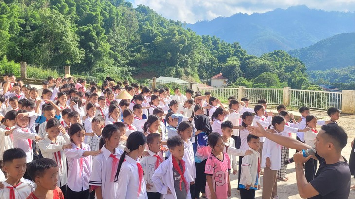 Tiết học ngoài trời của thầy trò Trường phổ thông dân tộc bán trú THCS Trung Lý, xã biên giới Trung Lý, tỉnh Thanh Hóa – Ảnh: HÀ ĐỒNG