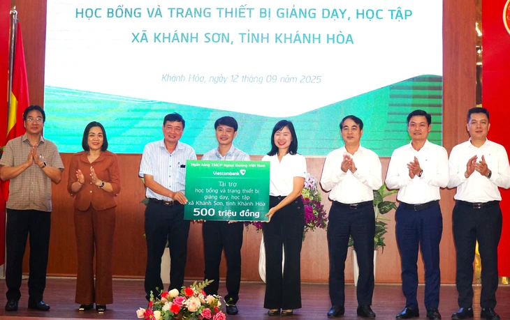 Trước đó ngày 12-9, các đơn vị nêu trên cũng trao tài trợ học bổng và trang thiết bị giảng dạy, học tập cho xã Khánh Sơn với tổng trị giá 500 triệu đồng và 20 suất quà (trị giá 1 triệu đồng/suất) cho học sinh khó khăn.