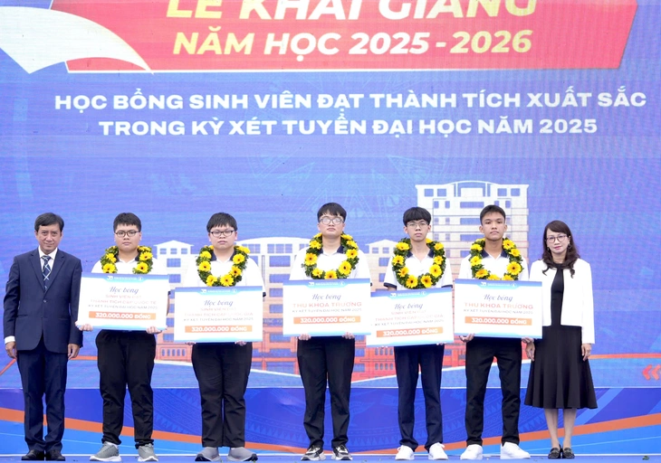 Tại lễ khai giảng năm học 2025 – 2026 diễn ra hôm nay 12-9, Trường đại học Khoa học tự nhiên (Đại học Quốc gia TP.HCM) đã tuyên dương, khen thưởng các tân sinh viên xuất sắc và trao học bổng với số tiền cao kỷ lục lên đến hơn 22 tỉ đồng cho các tài năng trẻ.