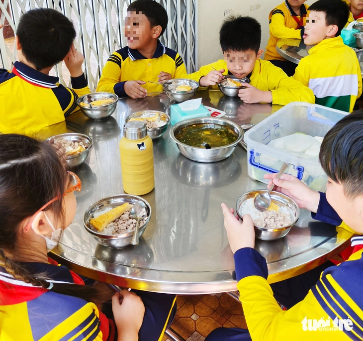 Bữa ăn bán trú của học sinh Trường tiểu học T.V. (ảnh chụp trưa 16-9) – Ảnh: M.V.